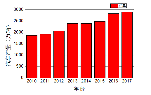 近8年國內的汽車產量變化如圖1所示,呈現逐漸遞增的趨勢,從近兩年來看國內汽車產量增速從2016年的14.5%下降到2017年的3.2%,增長速度明顯趨緩。