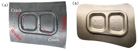 圖29:5A06復雜薄壁口框零件的落壓成形和沖擊液壓成形對比