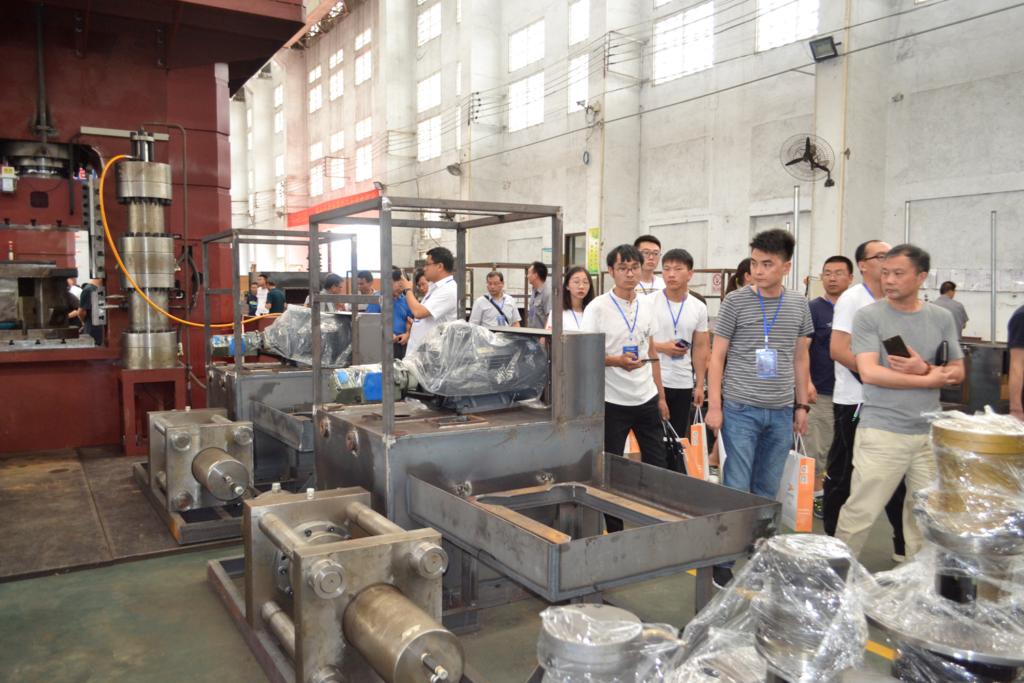 本次研討會的其中一個重要行程,是由河南興迪鍛壓設備制造有限公司帶領所有參會人員親臨公司廠區進行實地參觀與交流,并有專業人員對公司概況、生產現場及研發成果進行詳細的解說。由于本次參會人數較多,企業參觀環節被安排成兩個分組先后進行。