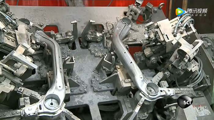 隨后,工人將這些零件和相鄰的懸架零件放置在裝配夾具中,由自動化焊機將它們焊接在一起。