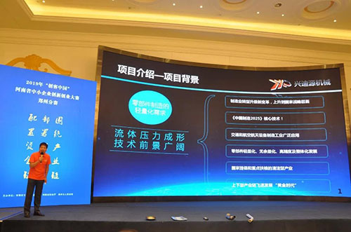 作為初評晉級的38家企業之一,我司興迪源機械李經明常務副總帶著“大型板材充液拉深成形裝備”項目和公司團隊參加了此次的鄭州分賽區比賽。