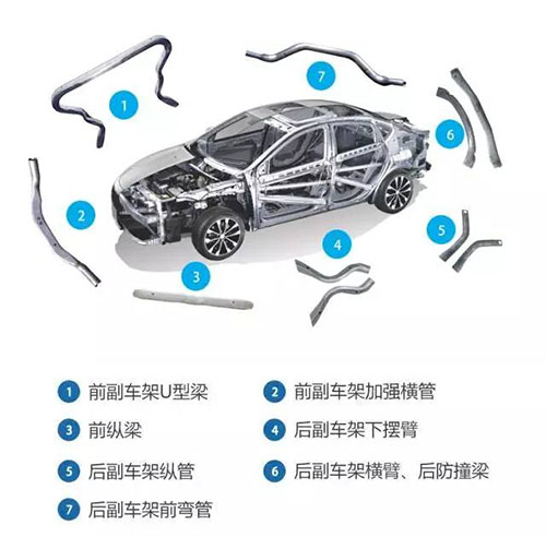 由于管類零件內高壓成形技術具備的工藝和成本優勢,在汽車工業中得到了迅速推廣。為了進一步推動汽車輕量化設計,將會在車身上開發更多的空心部件。隨著內高壓成形零件逐步應用于車身各個位置后,可能會顛覆人們對汽車結構設計的傳統思路。
