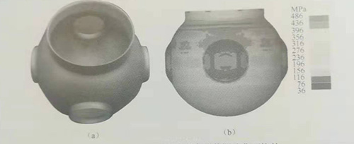 圖1-16哈工大研制的復雜形狀深腔曲面構件(a)實物照片;(b)等效應力。