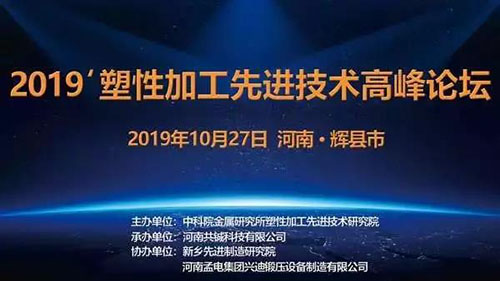 金秋十月,丹桂飄香,在秋高氣爽的太行山南麓,中科院金屬研究所塑性加工先進技術研究院主辦的“2019塑性加工先進技術高峰論壇”,于10月27日在新鄉市太行紅色文化教育基地——孟電生態園成功舉辦。