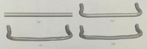 (a)管材;(b)彎曲;(c)預成形;(d)內高壓成形。