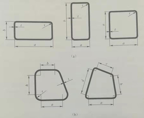 在這些截面形狀中,最常用和具有代表性的截面是矩形截面及其特例正方形截面。矩形截面尺寸包括長度a、寬度b和過渡圓角r。長度尺寸a位于水平位置,還是位于垂直位置,對預成形工序的要求是不同的。