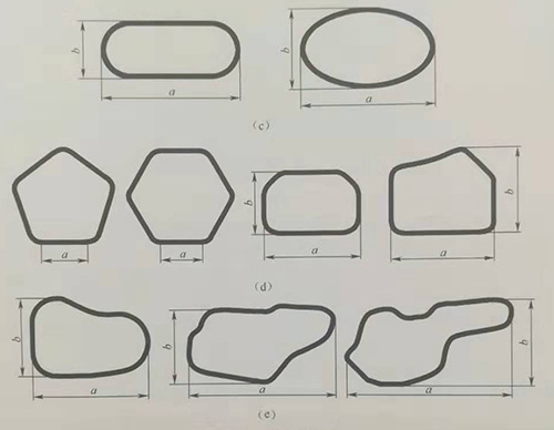圖3-4?典型截面形狀(a)?四邊形截面;(b)梯形截面;(c)橢圓截面;(d)多邊形截面;(e)不規則截面。