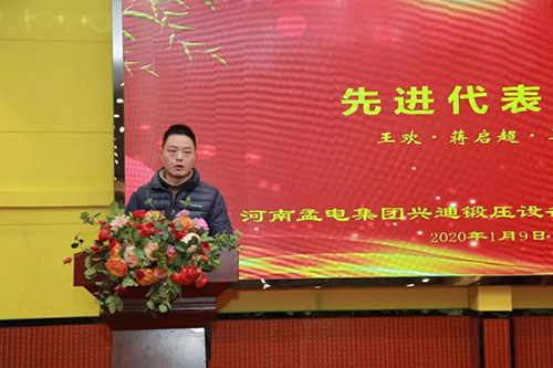 1月9日下午,河南孟電集團興迪鍛壓設備制造有限公司(以下簡稱興迪公司)2019年度工作總結暨表彰大會在孟電生態園第八會議廳隆重召開,興迪公司執行董事張金利、總經理歐陽翎、常務副總經理李經明、副總經理劉建忠、副總經理柳永等中高層領導及全體員工共130余人參加了本次工作總結暨表彰大會。
