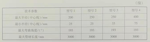 用于汽車結構件的幾種規格彎曲機的主要技術參數見表3-1。