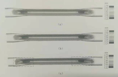 三、扭力梁內(nèi)高壓成形過程及壁厚變化: