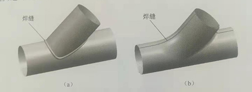 薄壁三通管的傳統制造工藝主要有兩種:一種是兩個直管的插焊結構;另種是利用板料沖壓成兩個半管后再焊接成整管,如圖4-2所示。