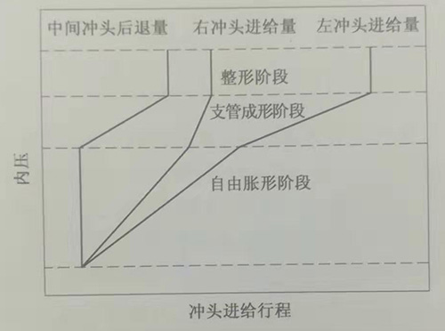 三通管內高壓成形過程中,不同成形階段內壓與沖頭進給行程至關重要。