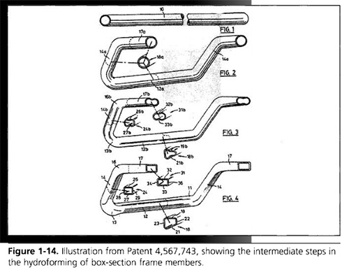 圖1-16專利5720092中的說明,展示了飛行器空間框架的液壓成形。