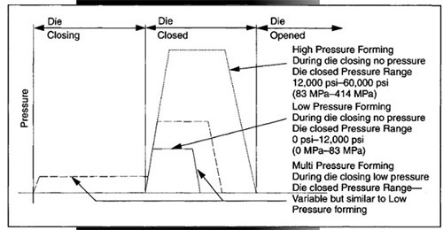 低壓液壓成形中使用的壓力大小由管道制造商協(xié)會(huì)定義為12000?psi(83兆帕)以下。