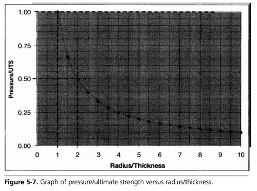 因此,根據方程5-1,壓力取決于材料的極限拉應力和材料厚度。如果厚度或材料強度可能發生變化,則應適當增加壓力的初始估計值。