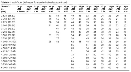 美國(guó)材料與試驗(yàn)協(xié)會(huì)(ASTM)規(guī)范編號(hào)A-513涵蓋了適用于機(jī)械管的所有要求;管壁系數(shù)(wf)是管外徑除以管材料厚度的比值。