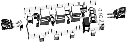 圖?1???典型工業(yè)機(jī)器人沖壓應(yīng)用布局方案