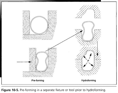 預成形夾具或工具設計必須適應回彈,并產生可重復成形的管狀坯料。預成形截面不應高度扭曲,并出現深度褶皺。即使在高成形壓力下,這些皺紋也不會完全消除,如圖10-6所示。