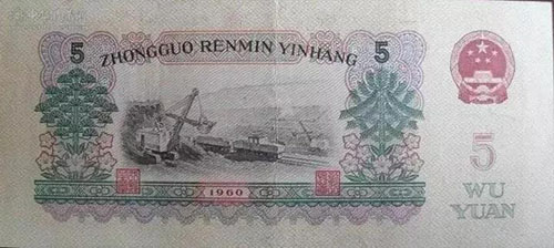 圖為960年版5元紙幣背面為從蘇聯引進和仿制的挖掘機