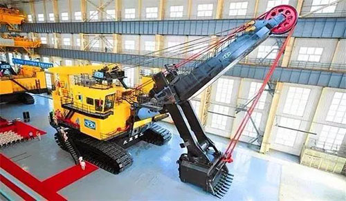 鏟斗:標準斗容75立方米,一斗可以挖掘135噸物料,每小時采礦能力達12000噸,應用于大型煤礦中,一個月的煤炭開采量可達到500萬噸。