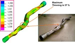 彎曲管中的應變會影響管件液壓成形過程中的變形和變薄,并確定最終零件的厚度和強度分布(這是在設計階段考慮的,以便成形部件在組件之前具有所需的性能)。