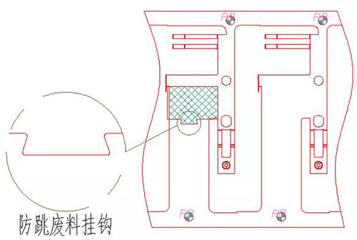 2)規則廢料上加掛鉤可有效的防止跳廢料。